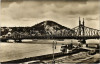 1932 Budapest, Ferenc József híd a Gellértheggyel, villamos a hídon (EK)