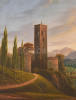 Jelzés nélkül: Toszkán táj. Olaj, rézlemez. Apró sérüléssel. Keretben 35x45 cm
