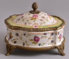Wong Lee virágmintás fajansz asztali kínáló dobozka, réz elemekkel, hibátlan, jelzett, 14×13×12 cm